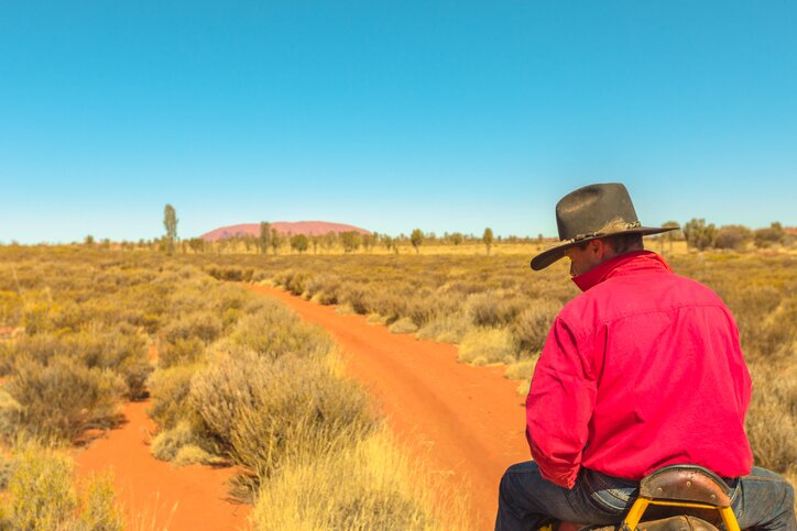 Today, your driver will transfer you to the airport, where you'll catch a three-hour flight north to Uluru. This sacred part of Australia's Red Centre desert plains is famous for Uluru-Kata Tjuta National Park and the Pitjantjatjara and Yankunytjatjara people—the area's traditional landowners. Upon arrival, you'll be transported to your hotel. Take some time to relax before this afternoon's excursion.