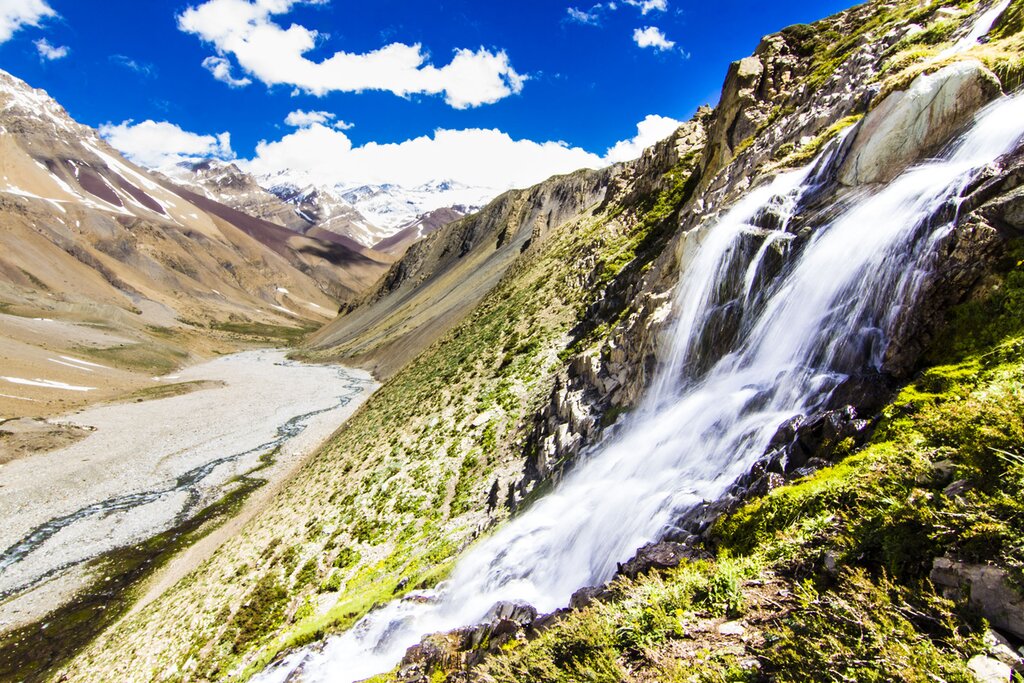 Throughout the day, you'll stop to explore small villages and set off on short hikes surrounded by rugged massifs and snowcapped peaks. For one of the most spectacular views in the region, continue almost 9,843 feet (3,000 m) above sea level, to reach the shores of the Embalse de Yeso, a turquoise reservoir nestled in the mountains. The final stop of the day takes you to a beautiful waterfall, where you'll pause for a picnic lunch before returning to the city.