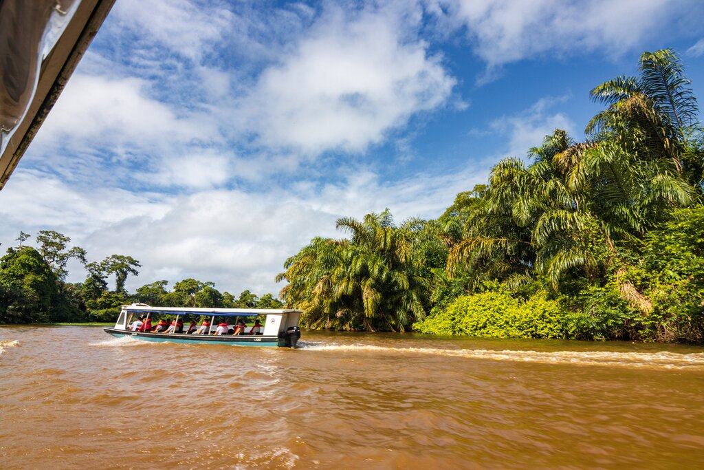 It's time to continue your Caribbean adventure as you make your way up the coast to Tortuguero. This village is the main hub for excursions into Tortuguero National Park, a 194-square-mile (312 sq km) protected area of ocean, coastline, wetlands, and rainforests that's only accessible by boat or plane. You'll start with an hour-long transfer north to the dock, where you'll board a boat for a slow but spectacularly scenic four-hour cruise up the coast. As your captain guides you through the region's distinctive canals and waterways, keep an eye out for plentiful wildlife like monkeys, iguanas, crocodiles, and more.