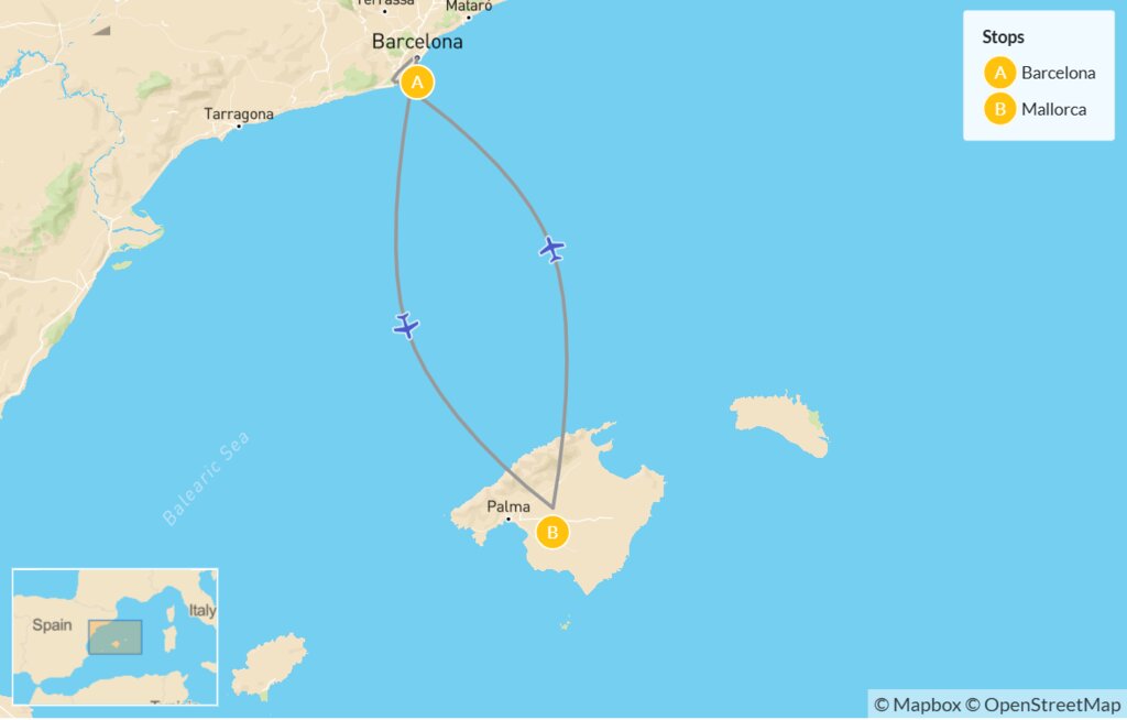 | Day 4 | Fly to Mallorca, Free Afternoon to Explore | Mallorca |