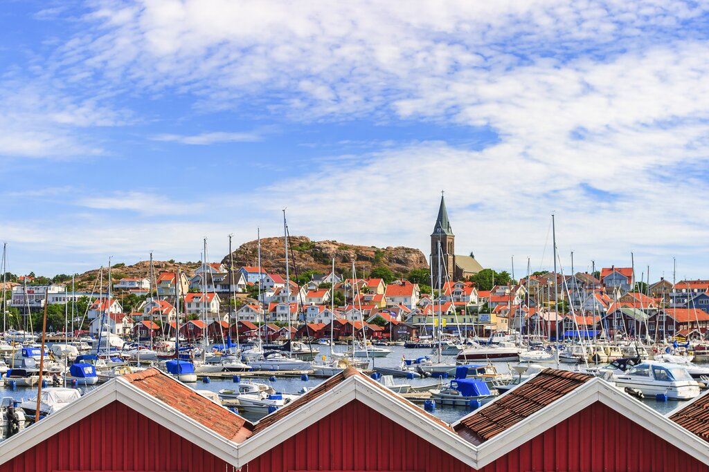 Make sure to stop by Smögen for a stroll along its famous pier, lined with colorful boathouses, shops, and cafés, where you can grab a seafood lunch and sample some of the region's famous oysters. You'll also want to spend some time in Fjällbacka, another picture-perfect seaside town, where you can see the statue of Ingrid Bergman in the town square (the actress spent nearly every summer on a nearby island) and refuel with an afternoon fika (the Swedish ritual of coffee and cake) at one of the waterfront bakeries. You'll end the day in Grebbestad, where pastel houses overlook an idyllic fishing harbor.