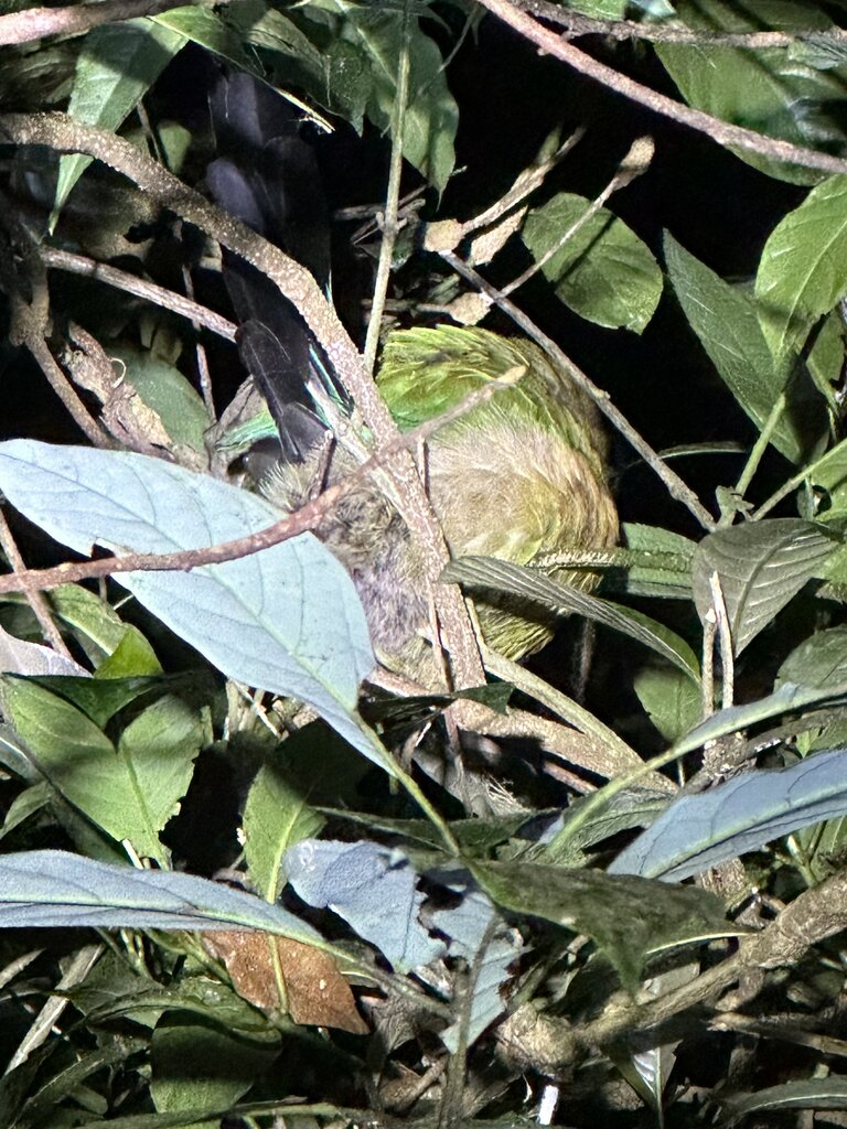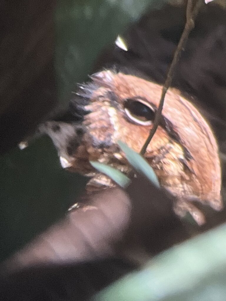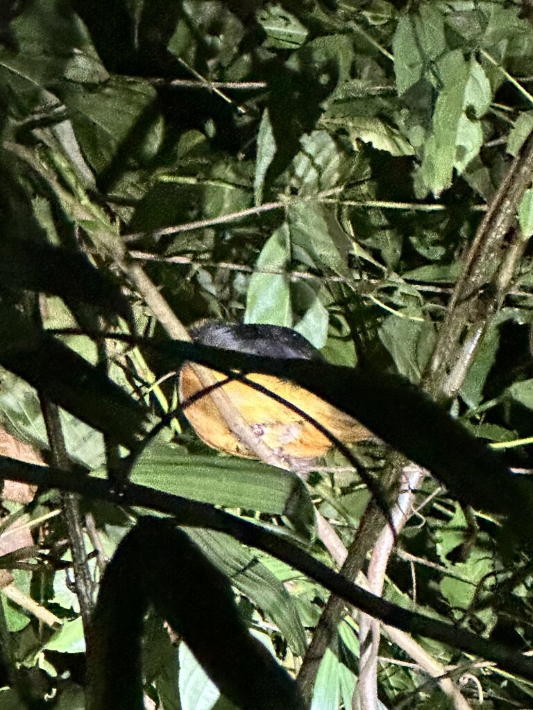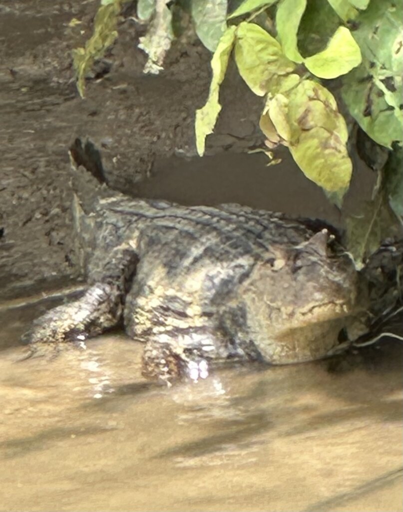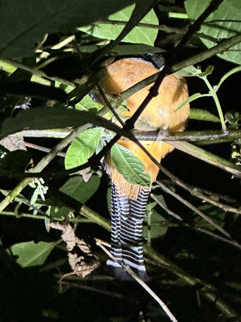 This hike/walk is right through the rain forest at night, some of the footing was slippery and muddy, but the boots and headlamps they provided were a great help. We saw lots of frogs, snakes, spiders, and birds. Then our guide Anthony got word that there was a Tapir nearby so we hightailed it to go see it. That was fabulous! The funny thing was, on the way back to the Hideaway we also saw a Tapir on the side of the road, which our driver slowed for us to view.