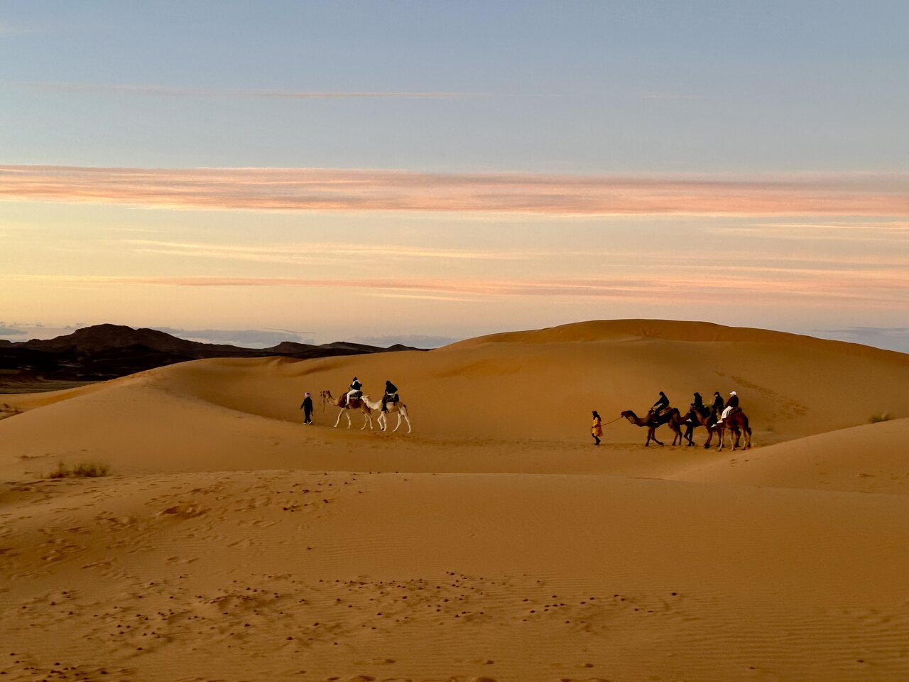 This was a long travel day, and unfortunately, there was a traffic delay which slowed us down. We opted not to have the camel ride on arrival to the desert as it was approaching sunset and getting late.