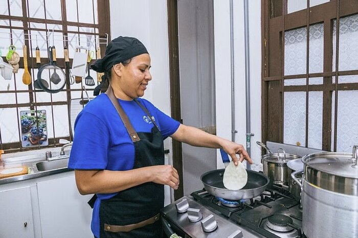 After gathering the freshest ingredients, you'll head into the kitchen, where the cooking portion of the experience unfolds. You'll prepare the country's favorites, such as ceviche, sweet plantain empanadas, picadillos, and crispy patacones, under the watchful eye of your chef, all the while learning new skills and recipes you can easily recreate at home. You'll enjoy a relaxed atmosphere as you cook, sipping your choice of mojito, soft drink, and tropical juice, making the experience feel more like cooking with friends than attending a formal class.