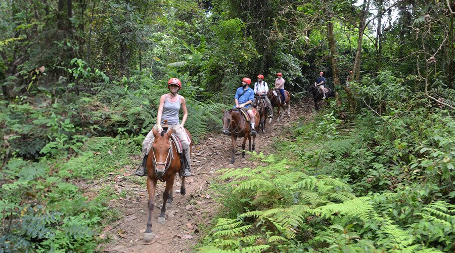 You'll ride at a gentle pace, giving you the chance to soak up the sights and sounds of the rainforest as your guide points out interesting plants and wildlife along the trail. If you're lucky, you might see capuchin and howler monkeys playing in the canopy, or spot splashes of color as toucans and tanagers fly overhead.