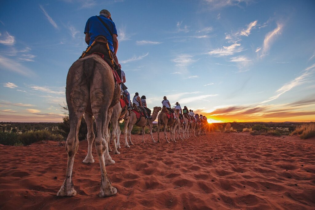 - Experience a peaceful one-hour camel ride through the outback's red sand dunes