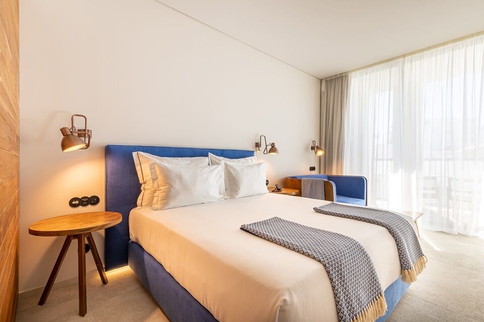 3HB Faro opened in 2021, after a creative reimagining by architect Miguel Abreu turned this once-abandoned cinema into a stylish fusion of new and old (and gave the city it's first 5-star hotel). The red 18th-century facade is now married with soaring sections of black metal and glass, while interiors by designer Paulo Lobo feel minimalist but inviting, with lots of warm teak wood and local Algarve limestone. Artful touches like hand-painted pottery and clay octopus pots reflect the coastal setting, while airy, sun-filled rooms are accented with traditional Serra da Estrela handwoven throws and woven baskets.