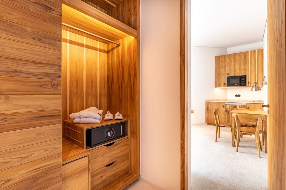 - Rooms feel understated but luxurious, with private teak balconies, bedside USB chargers, electric blackout curtains, Nespresso machines, and Marshall speakers.