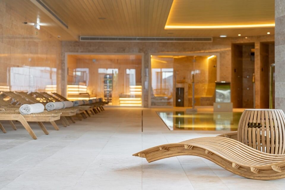 - Spa facilities include an indoor pool with hydrotherapy jets, a hammam, a large sauna, and Technogym fitness equipment.