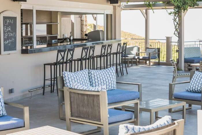 The pool area is the focal point of the hotel, with plentiful sun loungers, panoramic sea views, and a relaxed poolside bar that serves light meals. The optional breakfast buffet offers standard continental fare (alongside some homegrown fruit and produce), and there's a fun calendar of barbecue nights, quizzes, live music, and traditional dancing events. Other amenities are limited to a small massage room for wellness treatments and a tiny fitness center with a few machines.