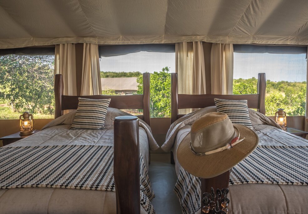 - Luxury tents overlook the river and savanna, giving you front-row wildlife viewing from your private veranda or lounge—even spotting hippos or hyenas at night if you stay alert.