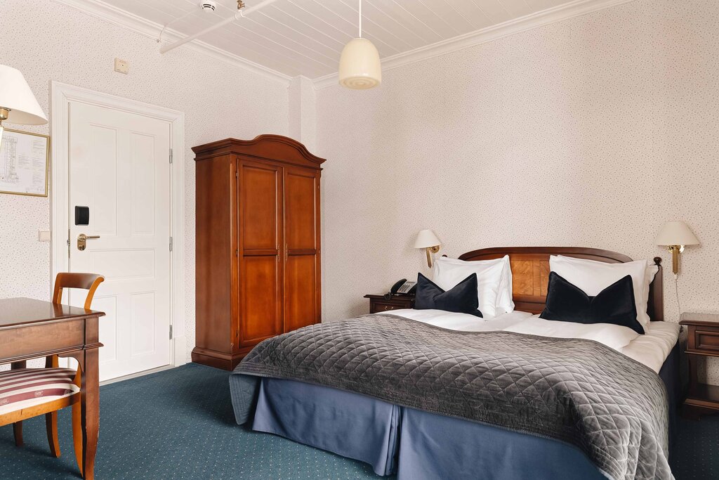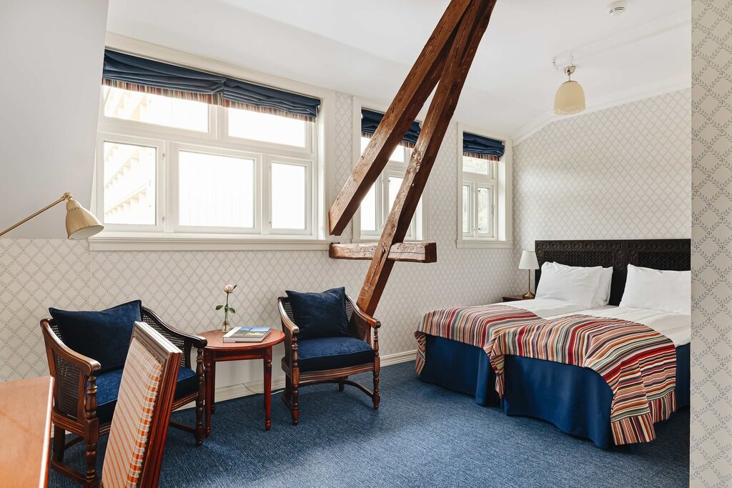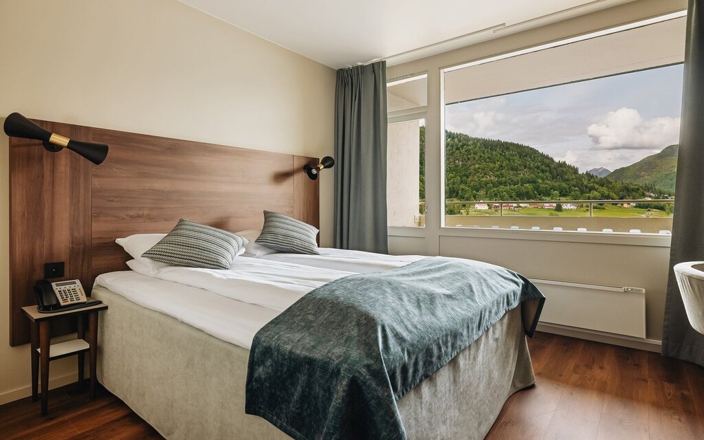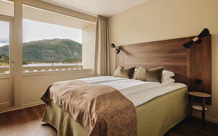 Most guest rooms (160) are in the newer building, which opened in 1965, though it's an easy walk to the historic wing. Some might be turned off by the austere exterior of this building, but comfortable rooms have seating areas and private balconies with a glimpse of the mountains and/or fjord. Many floors were renovated in 2018, with updated decor. In the historic wing, there are 30 rooms with old-world furnishings, including patterned wallpaper—and many come with balconies facing the fjord. Sizes range from single rooms to family rooms with pullout sofas that can sleep four.Amenities