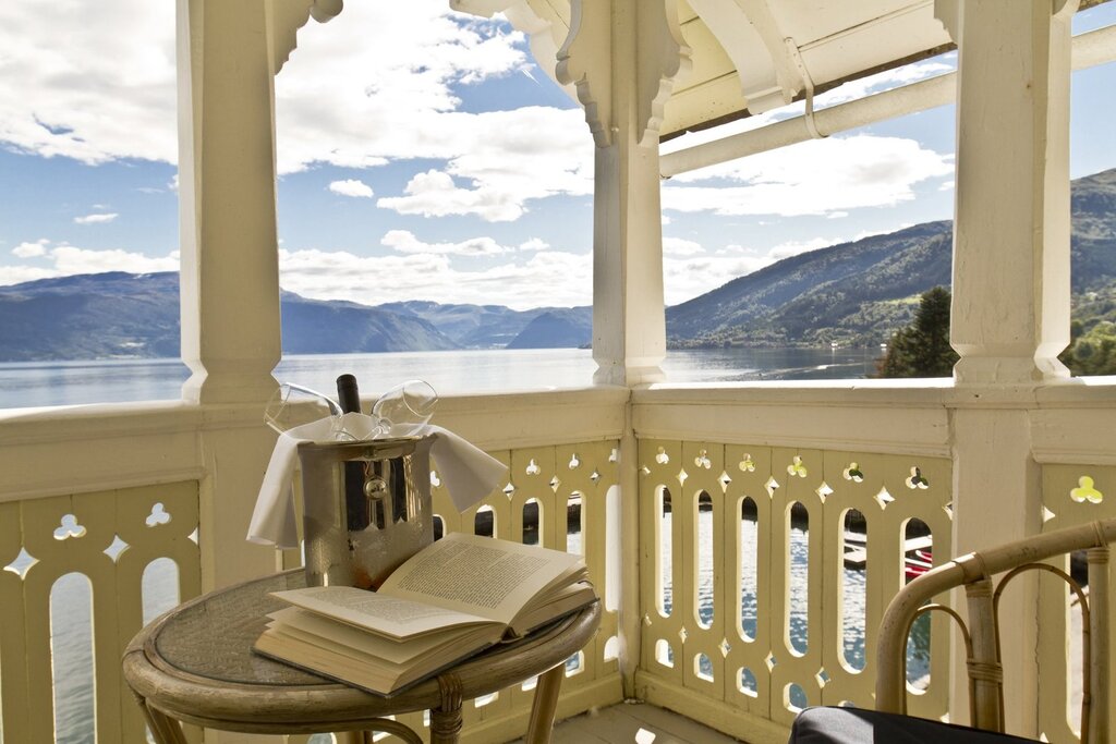 History buffs will appreciate that the Kvikne family took over the hotel in 1877 and still owns it today. And while they have made significant modern updates to the rooms in the annex over the decades, they take visible pride in preserving the hotel's heritage, from the classic architecture and art-filled historic wing to the way staff actively share the property's story with guests. The contrast between the original building and the modern addition underscores just how carefully that history has been protected. It's also entirely inseparable from its setting: mountains rise on all sides, traditional Norwegian dishes anchor the menus, and partnerships with nearby producers—like the local cider farm—root the experience firmly in the hotel's place along the Sognefjord.Location