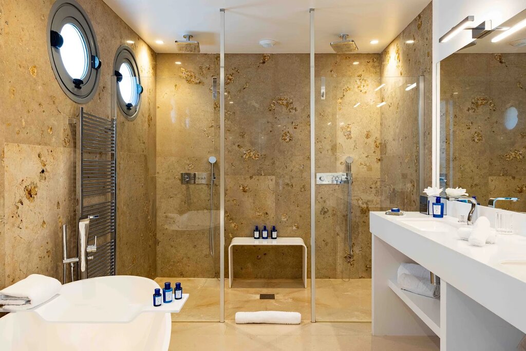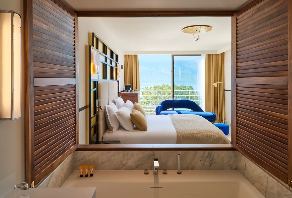 - Upgrade to an Executive Sea View room for a private terrace, elegant Art Deco-inspired decor, and a marble bathroom with Acqua di Parma toiletries.