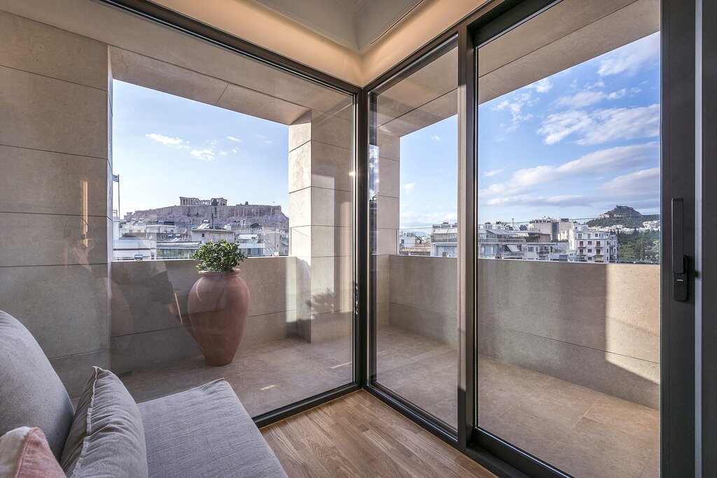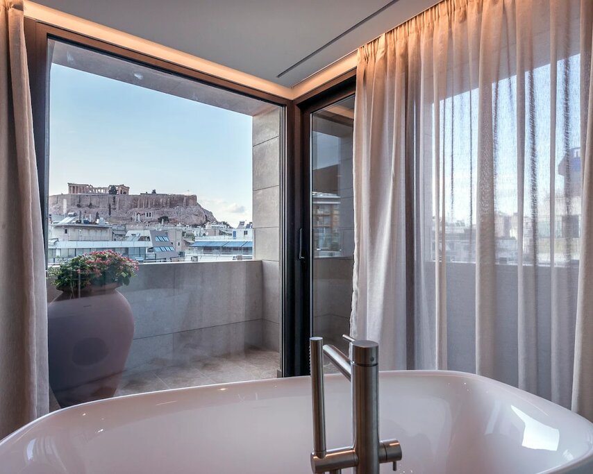 Most of the 37 guest rooms have a soothing, light-filled quality, decorated with soft colors and natural textures that evoke Grecian art and nature. Think honey-toned wood floors, handmade oak furniture, and breezy linen textiles. All rooms include COCO-MAT mattresses, pillow menus, espresso machines, and complimentary minibars. You'll want to skip the smallest Comfort units and opt for a room on an upper floor for more space and better views (or nab one of the top-tier Suites with a private terrace and Acropolis vistas). Bathrooms are just as beautifully designed as the rooms, with marble rain showers, high-quality Athens-made toiletries, and options for freestanding soaking tubs.