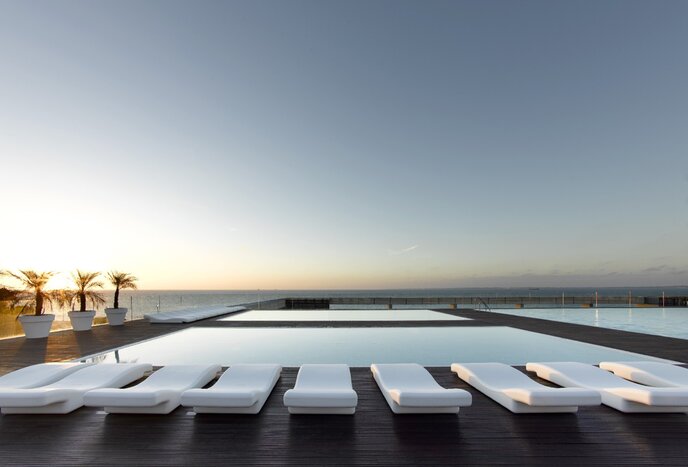 - Choose from four outdoor pools, all set on an elevated wooden deck with loungers, a seasonal bar, and Bay of Cádiz views.