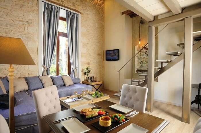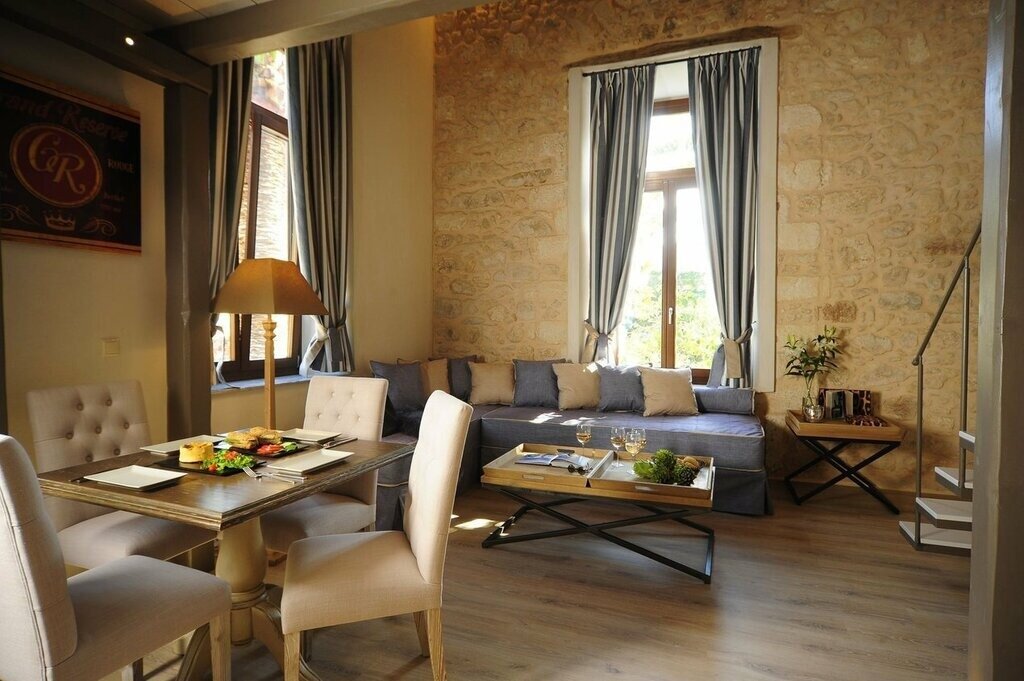 This traditional stone building began life in the early 20th century as the Athena Primary School, falling into disrepair and abandonment over the years until it was bought by a local cotton and silk merchant. Today, his grandchildren (Sifis, Manos, and Maria) own and run the small boutique hotel, named for their mother, Pepi. The updated interiors feel contemporary but traditional, preserving original features like stone walls and exposed rafters, and the service is standout, offering a true taste of Cretan hospitality.