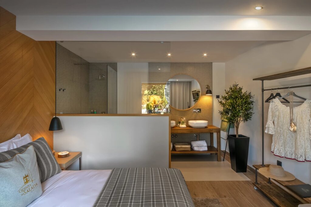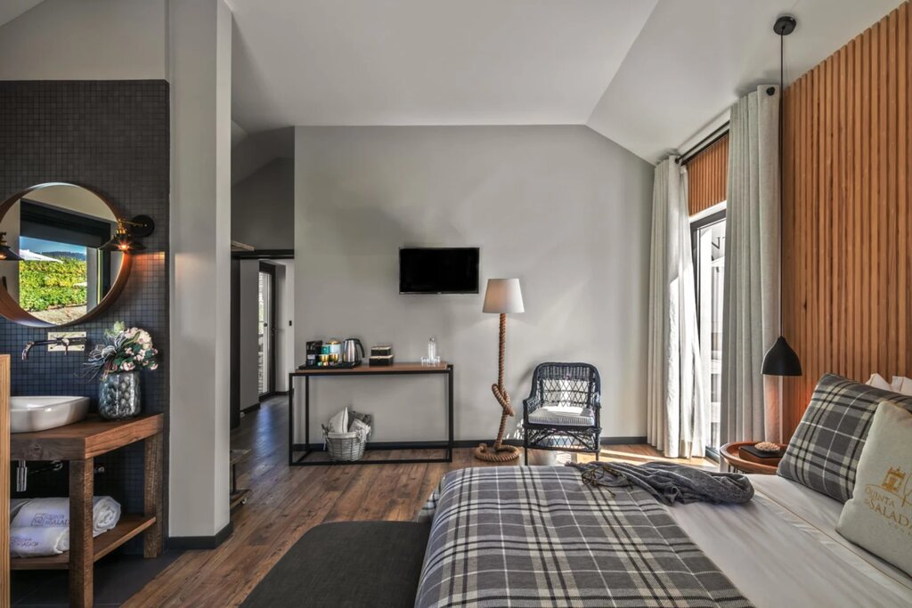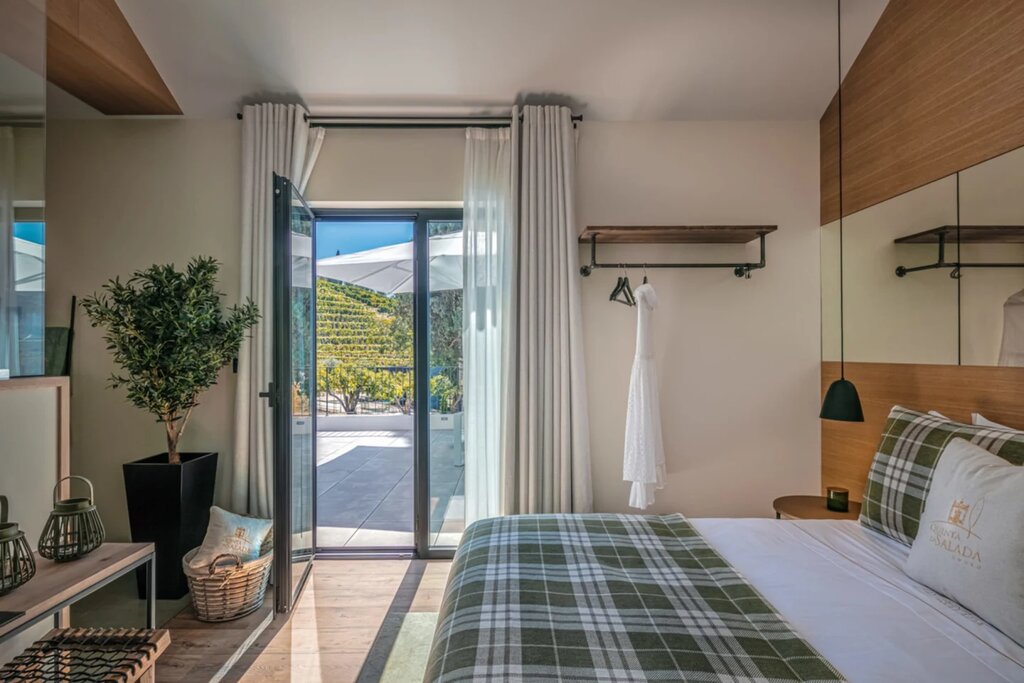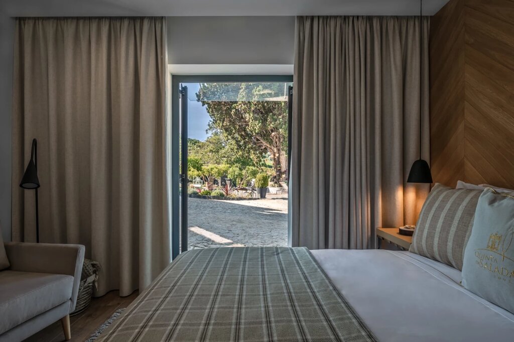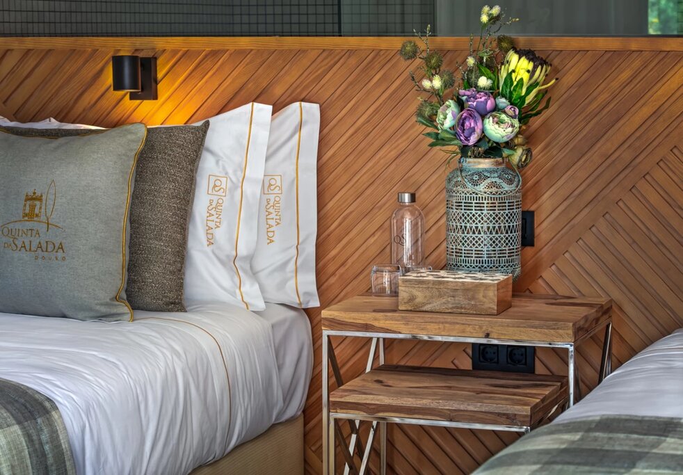Quinta da Salada has been in the same family for generations, but it's the most recent owners who decided to convert the wine estate's historic caretaker's cottage into a guesthouse-style stay. The classic tile-roofed building now houses six contemporary guest rooms, beautifully designed to maximize the sun-soaked hillside setting and Douro Valley views. Next door, the owners still reside in the 18th-century main house, and a tiny chapel serves as a picture-perfect example of Joanine-style architecture. More history is preserved on the nearby patio, where guests can sip house wines under a 200-year-old cypress.