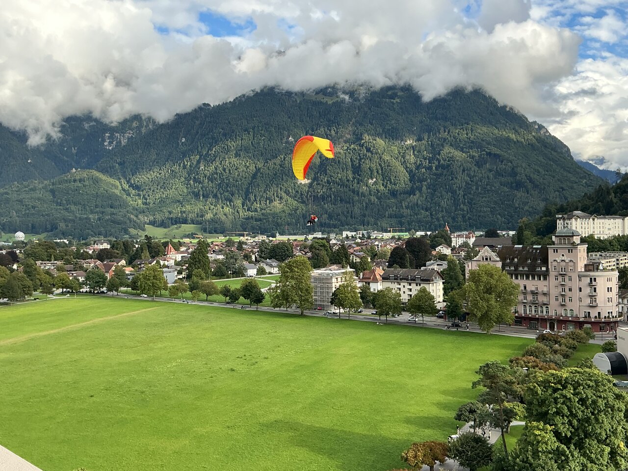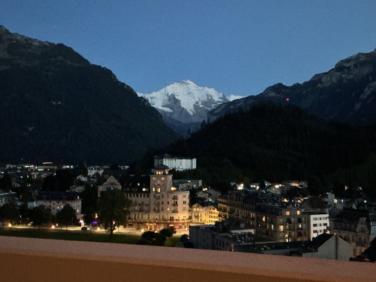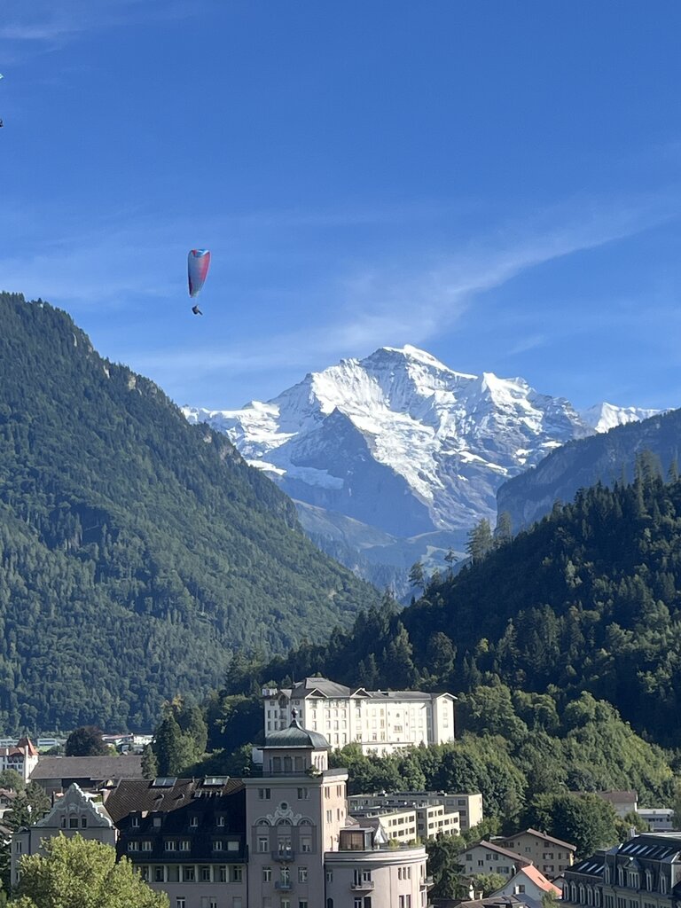 Great location in the center of Interlaken. Enjoyed watching the paragliding from our room balcony. Room was adequate with minimal comfort features and the bathroom was tiny (especially the shower).
