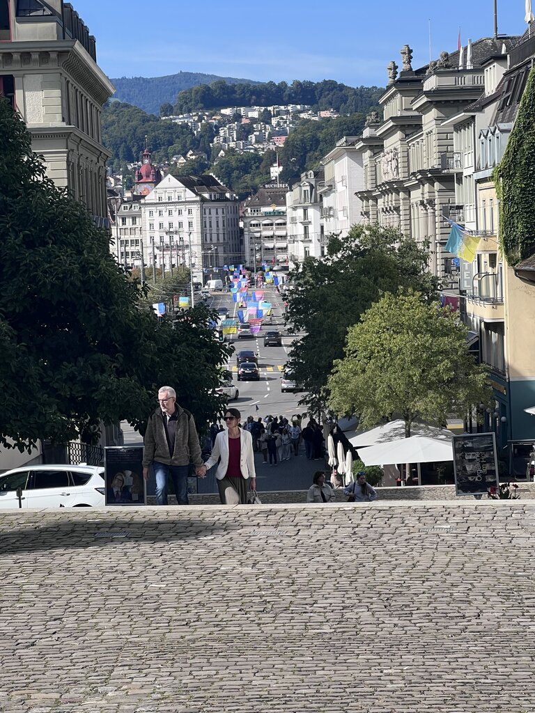 Dave loves history and regaled us with many details along the tour - to our immense enjoyment. He is very knowledgeable and enjoys sharing what he knows. The details of the Chapel Bridge history and art work is amazing. He arranged a beautiful wine and cheese tasting at a perfect location near the Chapel Bridge. We learned that Dave and Greg worked for the same company in their past careers and his wife worked for Kodak which is headquartered in our home town of Rochester NY.