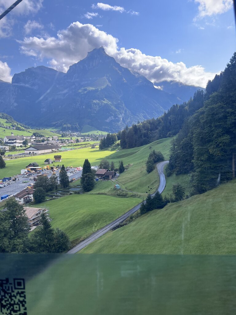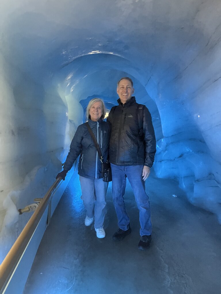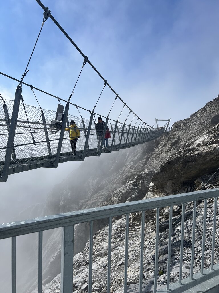 We toured Mt. Titlus in the morning which was better for a less cloudy view at the top. It was quite crowded with some unruly tour groups. The views were clear but only briefly- at 10,000 ft! We did the glacier cave walk and the suspension bridge. It was amazing! Following this we had a caffe latte and snack in Engleberg and then a cheese making lesson at a local monastery. Our cheese maker was so enthusiastic! He shared lots of information about the local farmer traditions and making cheese as he taught us how cheese is really made. We made some curds and tasted some local farmer cheese at various ages. It was fun.