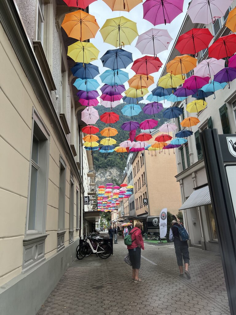 Marta took us on a hike alongside Lake Brienz, a gorgeous turquoise blue lake near Interlaken. Following the tour, we viewed a waterfall nearby. You could hike up and walk behind the falls. For the return to Interlaken, we took a tour boat. Various areas along the lake felt like we were in a rainforest, lunch greenery with moss and ferns. She shared the local history and geography as we hiked.