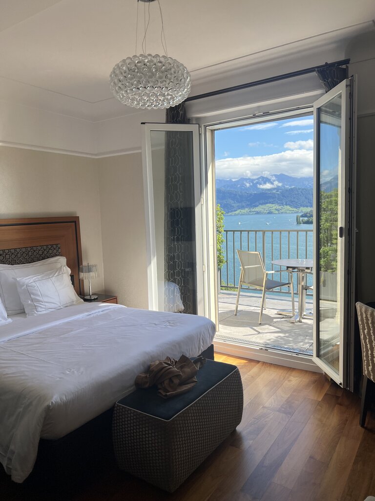 Outstanding location with amazing views over Lake Lucerne and the promenade area. Footprint of the room was smaller but everything was first class and comfortable. Soft drinks & some snacks from the mini bar were included and we enjoyed this after touring the city. Dyson hair dryer in the bathroom. Upscale all the way.