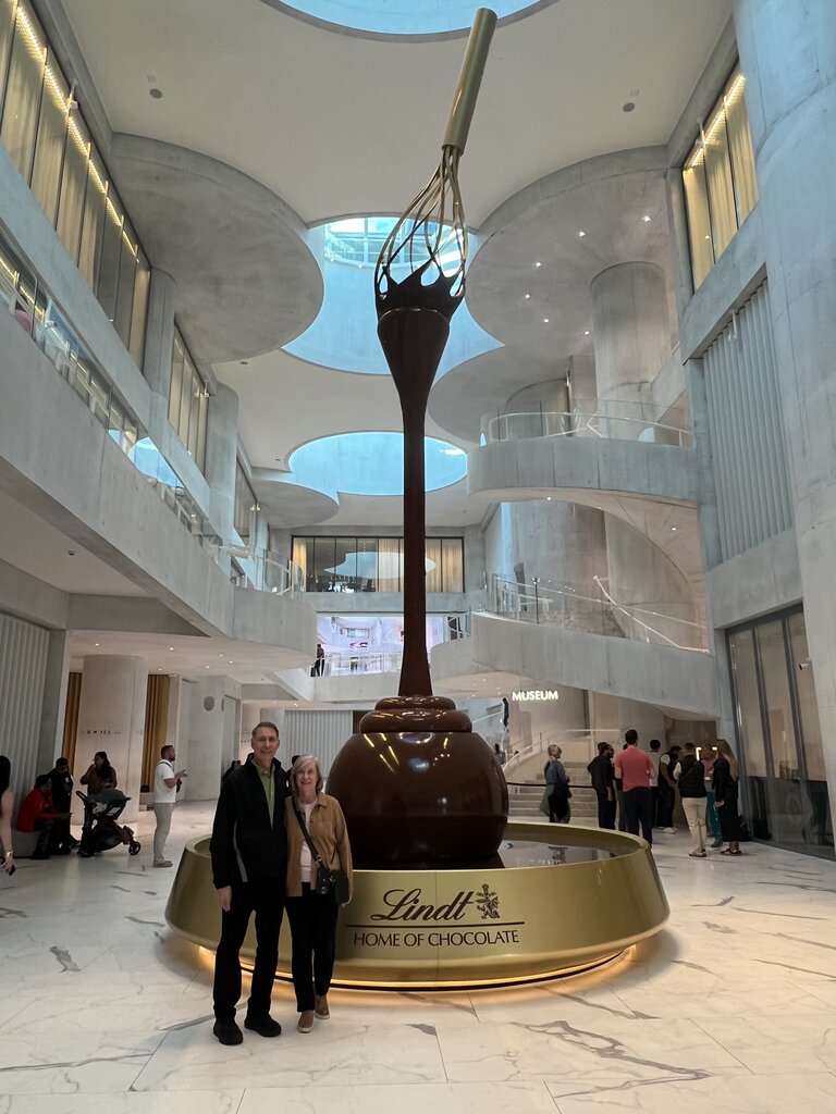 Ivo gave us a very brief introduction to Zürich by car and then we drove to tour the Lindt House of Chocolate. It was a standard group tour and it’s a self tour with recordings throughout. It’s well done, lots of chocolate samples along the way. It was well attended. Following this we drove to a lovely restaurant only accessible via funicular for a traditional cheese fondue dinner while overlooking Lake Zurich and the city below. It was planned for sunset so we could see the view both in daylight and following sunset with all the lights.